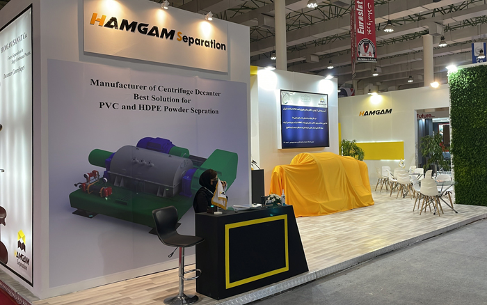 در دومین روز برگزاری نمایشگاه حمایت از ساخت داخل در صنایع پتروشیمی آیین رونمایی از اولین سانتریفیوژ دکانتر تماماً ایرانی ساخت این شرکت که به سفارش شرکت پتروشیمی اروند و بمنظور استفاده در واحد PVC طراحی و تولید گردیده بود با حضور مدیرعامل محترم گروه صنایع پتروشیمی خلیج فارس جناب اقای دکتر علی عسکری و در حضور مدیرعامل محترم بانک تجارت جناب اقای دکتر اخلاقی، جناب آقای مهندس نشان زاده مقدم مدیرعامل محترم شرکت پتروشیمی اروند و سایر مدیرعاملین محترم شرکت های تابعه گروه صنایع پتروشیمی خلیج فارس برگزار گردید. شرکت دانش بنیان همگام صنعت دارنده مجوز تولیدی نوع یک در زمینه طراحی و ساخت سانتریفیوژ دکانترهای صنایع پتروشیمی در پروژه مذکور موفق به ساخت یکی از بزرگترین سانتریفیوژ دکانترهای مورد استفاده در صنایع پتروشیمی گردید.